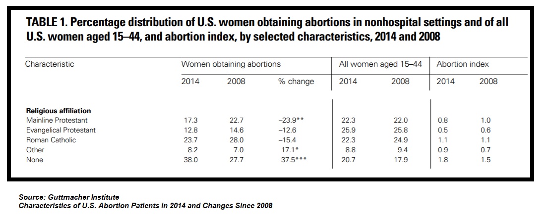 A closer review of data reveals a decline in abortions among all religious groups from what was reported in 2008.