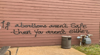 On one of the outside walls of the clinic was spray-painted the message: “If abortions aren’t safe then you aren’t either.”