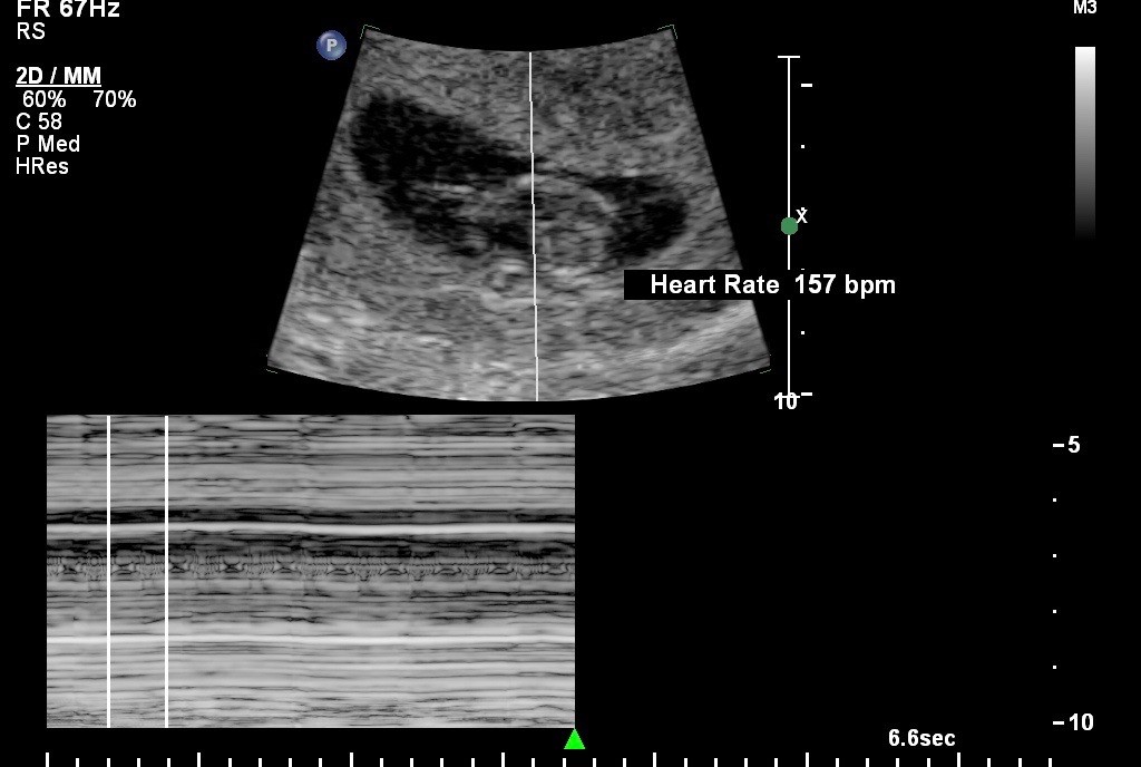 The embryonic heartbeat is the first sign of early pregnancy on ultrasound, which can be visualized in transvaginal ultrasound at approximately 5 weeks gestation. The American Pregnancy Association states that the presence of an embryonic heartbeat is an assuring sign of the health of the pregnancy.[4] The heart of the embryo continues to develop over the next several weeks. It is fully formed around 10 weeks gestation.[5]