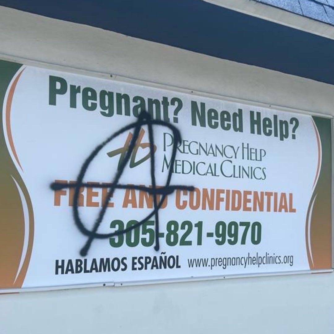Graffiti plastered walls, and the letter “A” that had also been scrawled at other pregnancy centers attacked by extreme pro-abortion proponents glared from the Hialeah center’s on-site sign.