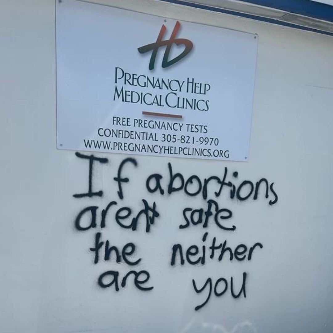 Pro-abortion advocates attacked one of the pregnancy centers operated by Heartbeat of Miami during the Fourth of July holiday, painting graffiti on walls and damaging security cameras. However, their attempt to stop life-affirming service to women was thwarted as area pro-lifers rallied, helping the center re-open on July 5.