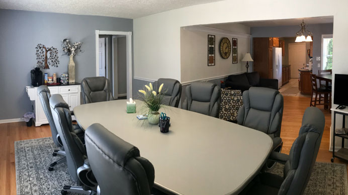 Above is the room where the center hosts classes and board meetings. The sitting area behind the table is where they do client intake. "No one else is in that area when we meet with clients," says Amato. | Photo Courtesy: Lori Amato