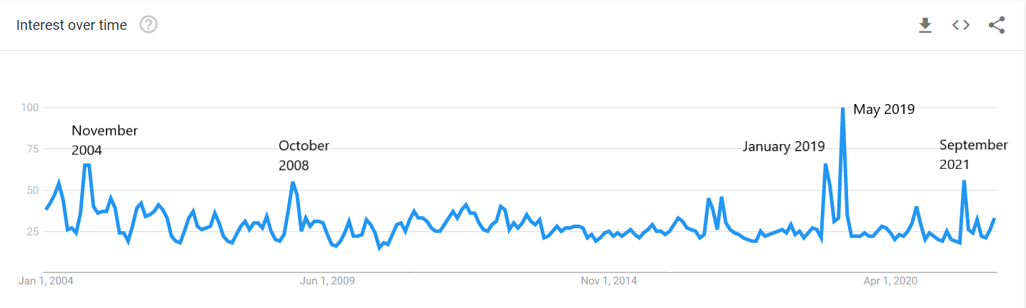 But according to Google, interest did not reach previous highs, and quickly subsided:
